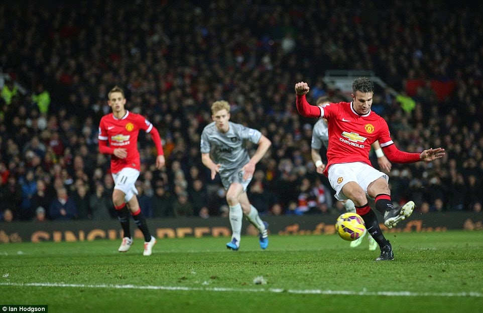The Dutch striker had a chance again after a lovely ball over the top this time from Mata, but was disappointed with his weak header. After 53 minutes Rooney had a shot well saved by keeper Dunn, as the ball spilled out van Persie just couldn't tidy up the leftovers.